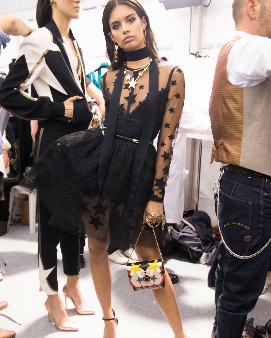 Durante o evento, realizado à margem da Semana da Moda de Paris, a modelo brilhou num vestido preto com transparências assinado pelo designer David Koma.
