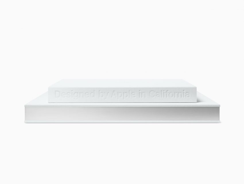 Sob o título ‘Designed by Apple in Califórnia’, a obra apresenta 450 imagens de equipamentos actuais e antigos – desde o primeiro iMac, de 1998 ao Apple Pencil, lançado no ano passado – com a icónica maçã semi-comida.
