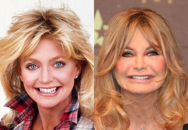 Com o sorriso “congelado”, a atriz – e mãe de Kate Hudson – apareceu bem diferente do visual que a consagrou.