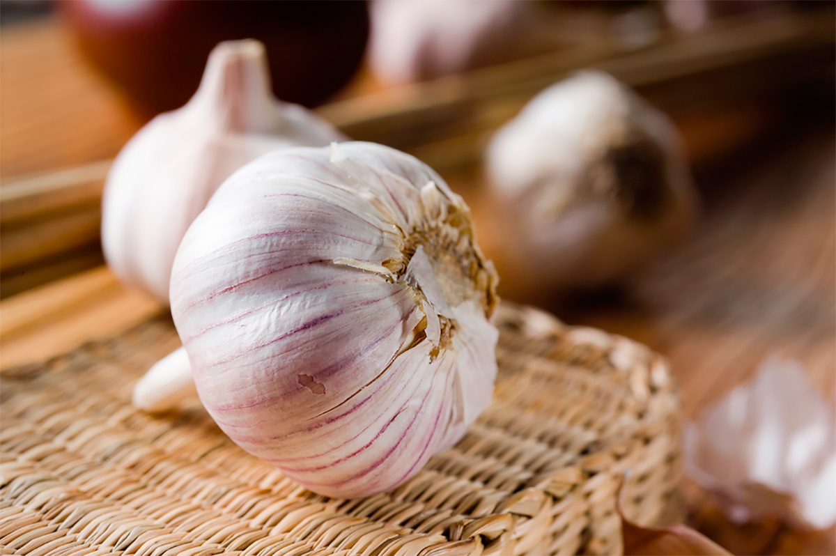 Alho: tem ação anti-infeciosa e anti-inflamatória graças às suas caraterísticas ricas em cálcio e potássio