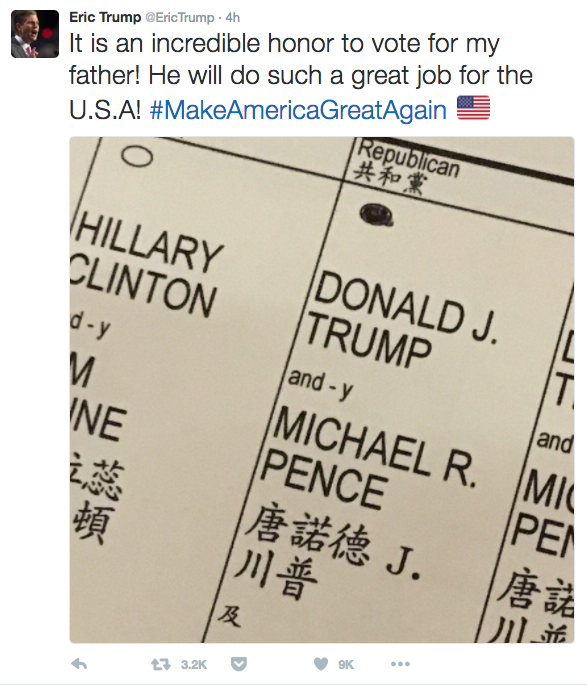 Nestas eleições cometeu uma gaffe e um crime: uma selfie do boletim de voto, ato proibido no estado de Nova Iorque. Acabou por apagar a foto do Twitter, mas já se tinha espalhado pelo mundo. Tal como aconteceu com Justin Timberlake há semanas.