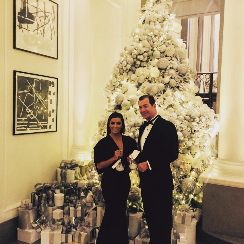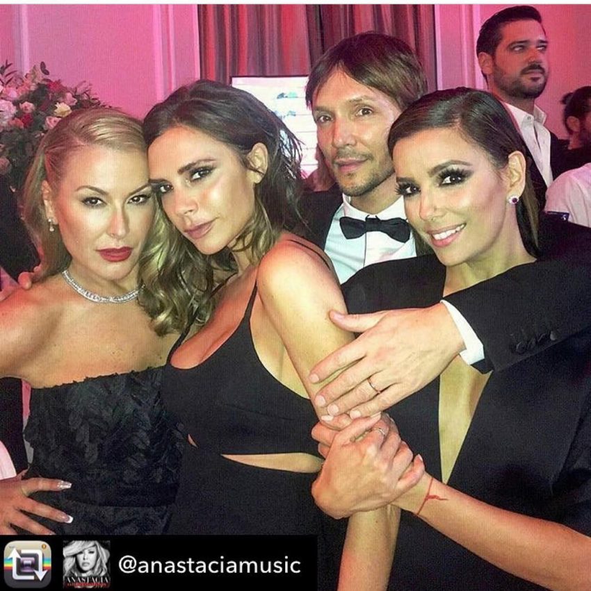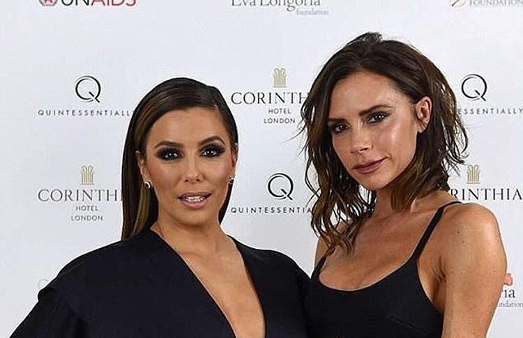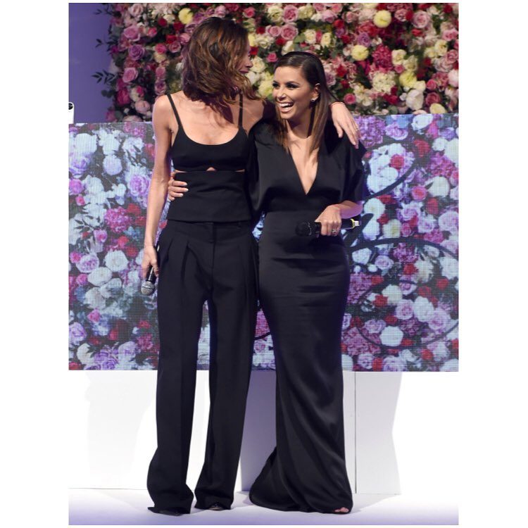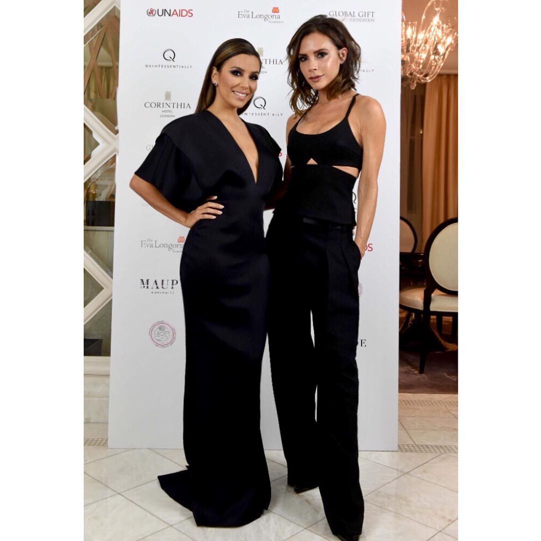 Maias uma vez, Longoria, de 41 anos, escolheu uma das criações da amiga Victoria para ser anfitriã do evento, um vestido azul escuro bastante decotado que realçava a sua boa forma. Já a estilista britânica optou por um jumpsuit preto da sua última coleção.