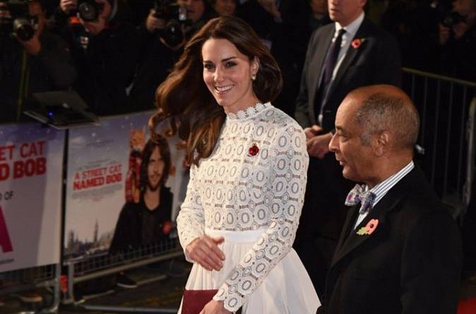 A duquesa de Cambridge foi esta quinta-feira (3), convidada especial da antestreia do filme ‘A Street Cat Named Bob’, que decorreu em Londres.