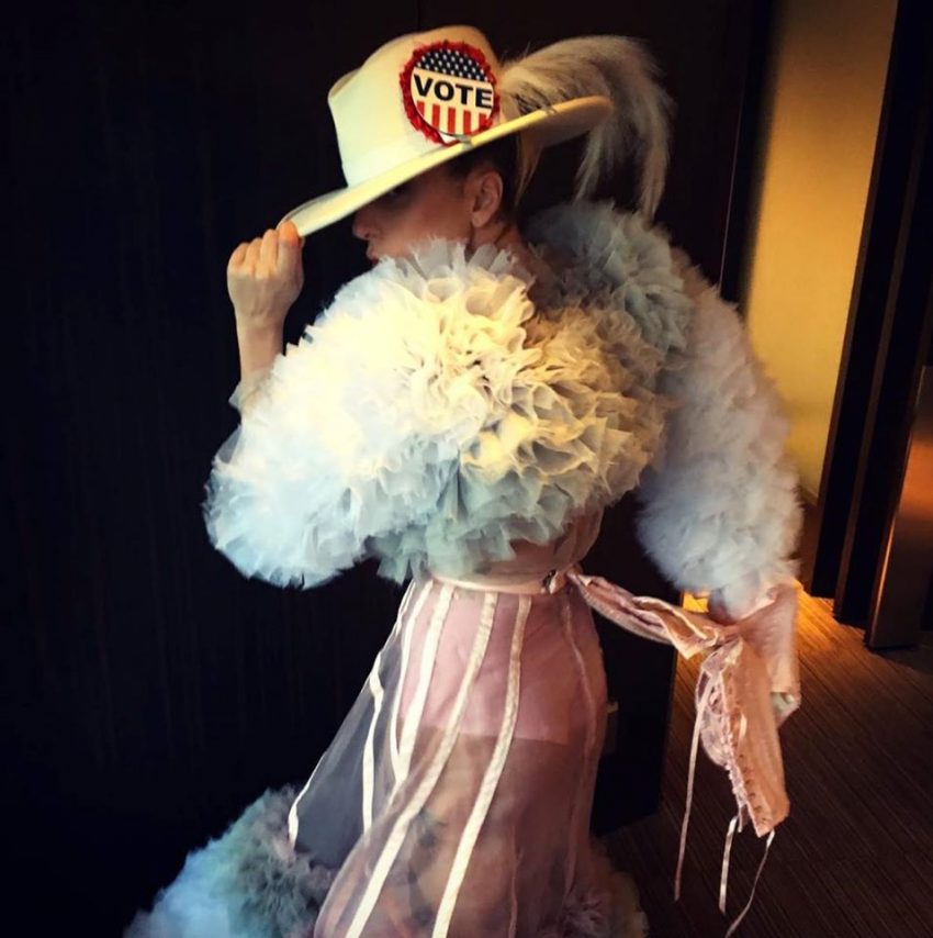 Lady Gaga estava no Japão a promover o seu álbum, tendo sido vista no aeroporto internacional Narita, com um look extravagante, de tule e transparências que fez questão de mostrar nas redes sociais. Para completar o visual, a cantora usou um chapéu com as cores dos EUA e a palavra “vote”, incentivando assim as pessoas a ir às urnas na terça (8).