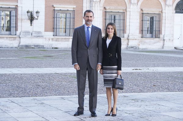 Um look apropriado para a abertura do Simpósio Internacional sobre o rei Carlos III de Espanha, que decorreu no Palácio de Aranjuez, esta segunda-feira. A rainha Letizia e o rei Felipe presidiram à cerimónia.