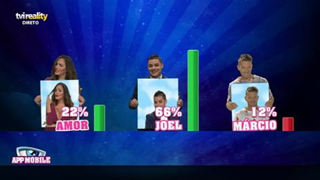 23.38 — Amor tem 22%. Sai o Márcio com 12% dos votos.
