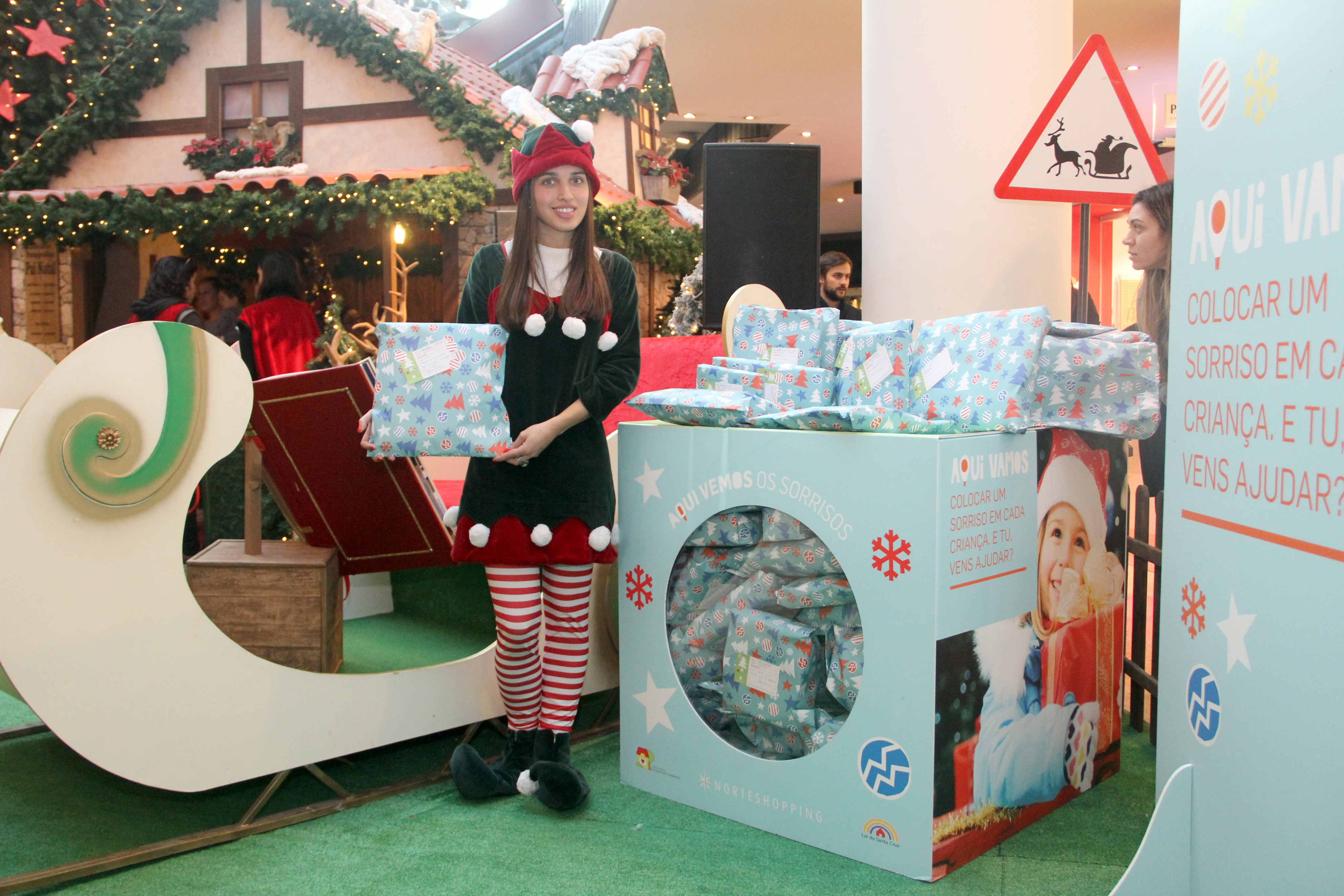 A entrega de presentes iniciou-se no NorteShopping, com a presença da madrinha Cláudia Vieira neste momento especial. A atriz portuguesa proporcionou diversos sorrisos ao oferecer os presentes desejados e antecipando o Natal das crianças e jovens das instituições “A Casa do Caminho” e “Lar de Santa Cruz”, dando-lhes a oportunidade de receber brinquedos novos e viver uma experiência diferente na época mais desejada do ano.