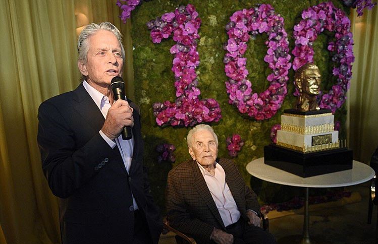 O aniversariante teve a seu lado a mulher Anne Buydens Douglas, de 97 anos, o filho, de 72 anos, a nora, com 47, e os dois netos, Dylan Michael Douglas, de 16, e Carys Zeta Douglas, com 13.