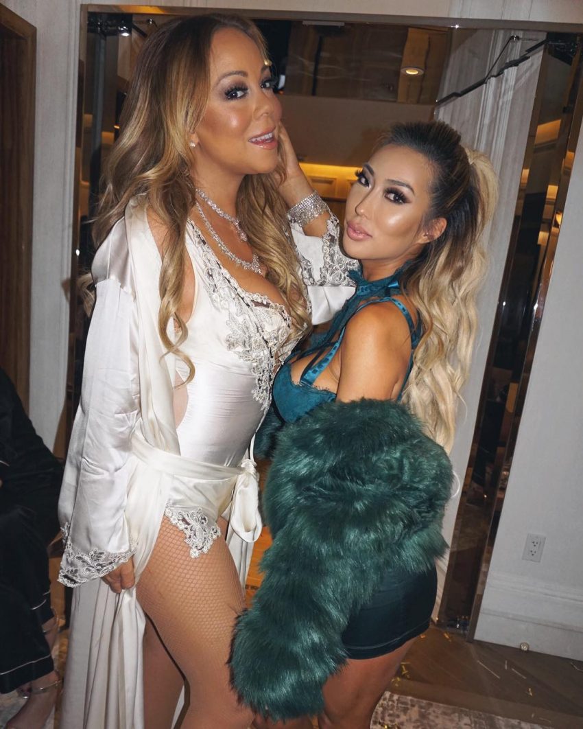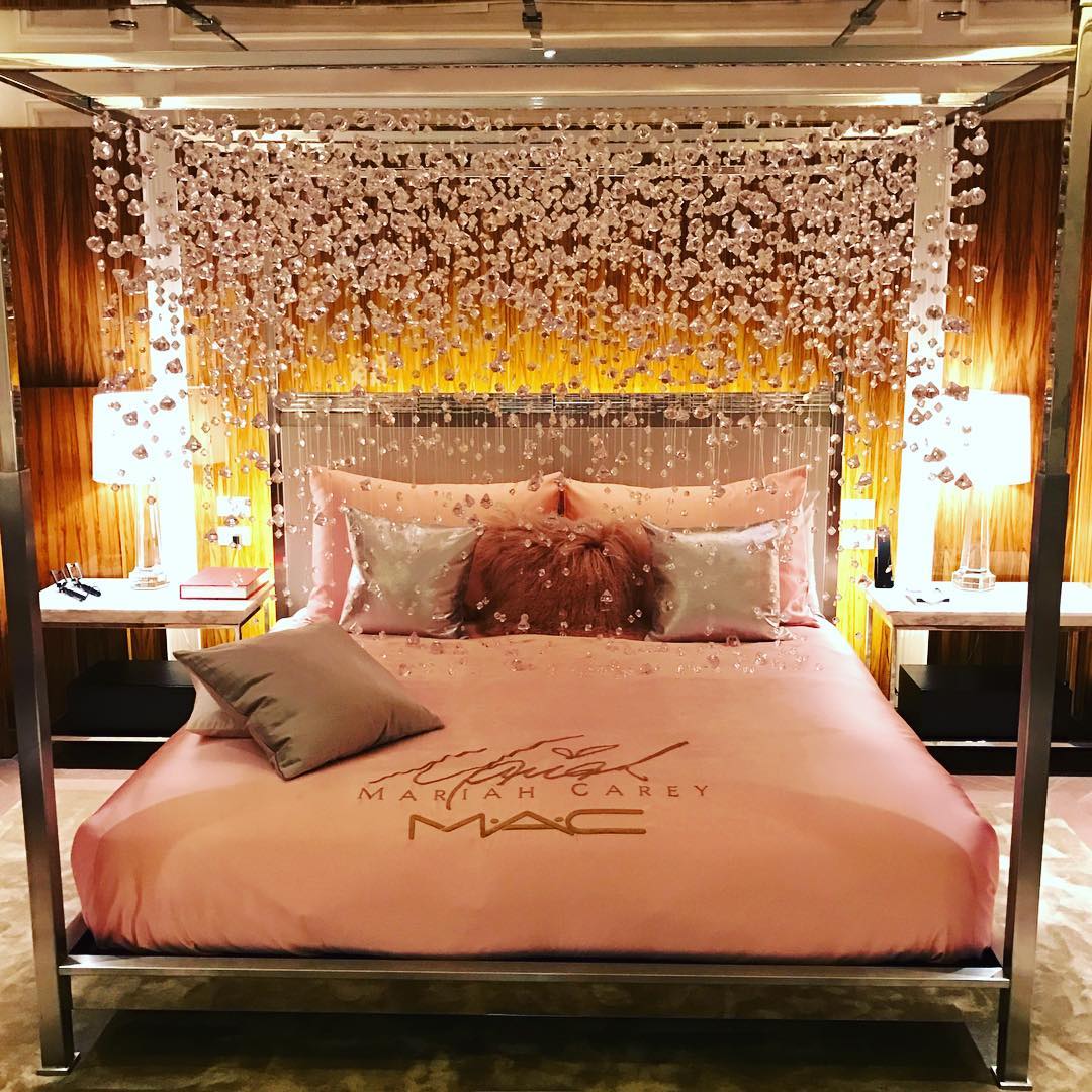 O dress code, esse tudo tinha a ver com o ambiente luxuoso, e claro, pensado à imagem da anfitriã: lingerie. Com um body decotadíssimo e um robe de cetim, a diva posou ao melhor estilo de “na cama com Mariah”.