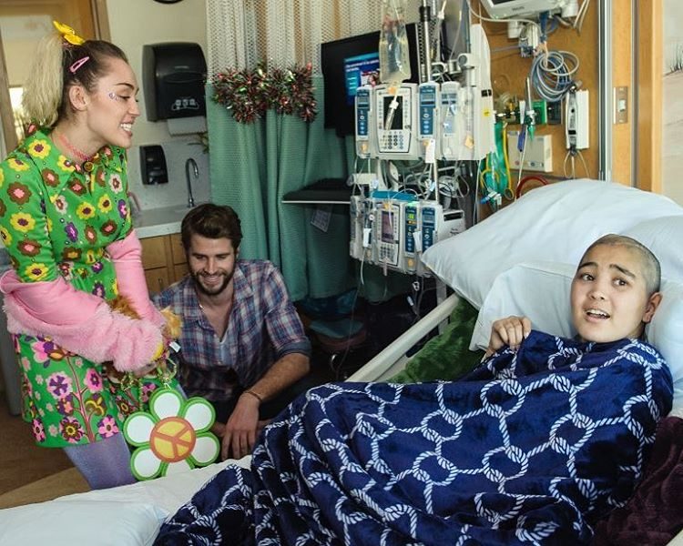 Nesse âmbito, a cantora e o noivo, o ator australiano Liam Hemsworth, foram visitar o serviço de Oncologia do hospital pediátrico Rady Children’s Hospital, em San Diego, Califórnia, para levar alegria às crianças internadas.