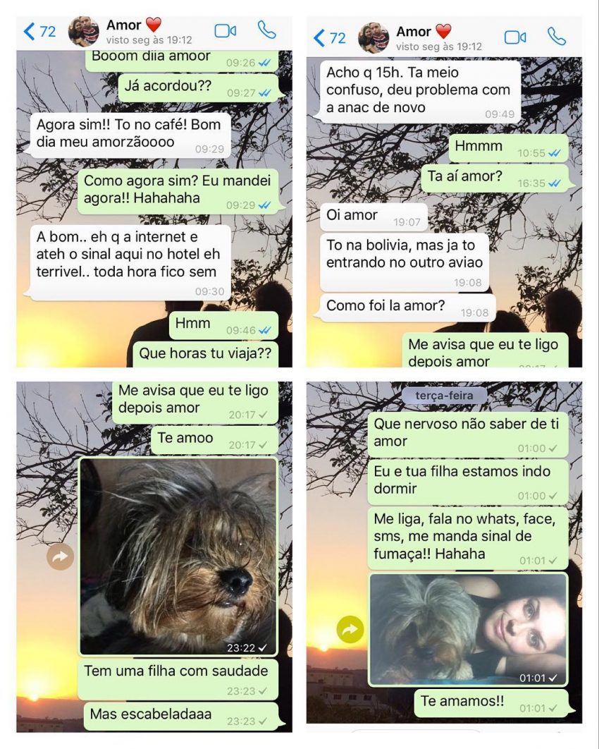 “E cada vez vai ficando mais difícil ver que a última visualização foi às 19:12 de segunda-feira! ? E já que tu não viu minhas últimas mensagens, te mando agora só pra reafirmar tudo aquilo que te escrevi na terça, depois que já estavas aí no teu novo lugarzinho iluminado! Aah, e pra seguir te deixando bem informado, e não deixar dúvidas de que tu recebeu a minha mensagem uma rede de amigos, parentes, conhecidos e até desconhecidos deu um jeito de compartilhar centenas de vezes a minha declaração! Até o jornal da cidade que tu lia todas as manhãs na sacada tomando mate fez questão de replicar essa minha conversa contigo! Sei que tu tá vendo tudo isso, né? Me dá força por favor? ?? Essa vida sem a tua graça não tem a menor graça meu amor!”, escreveu na legenda da imagem.
