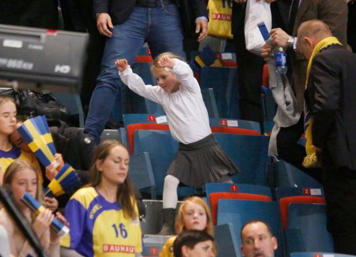 Princesa Estelle da Suécia veste o papel de ‘bela adormecida’ em jogo de andebol