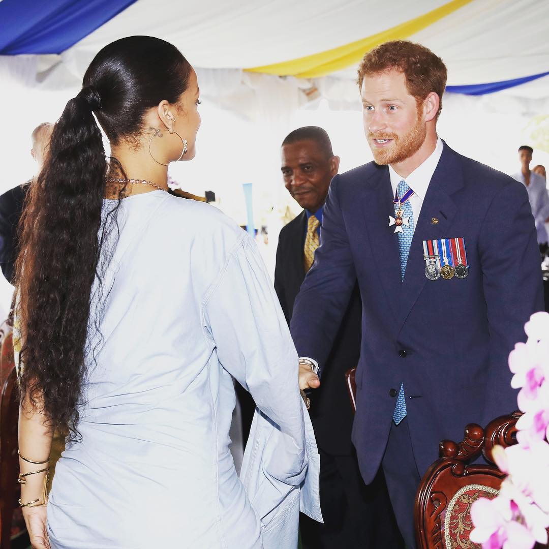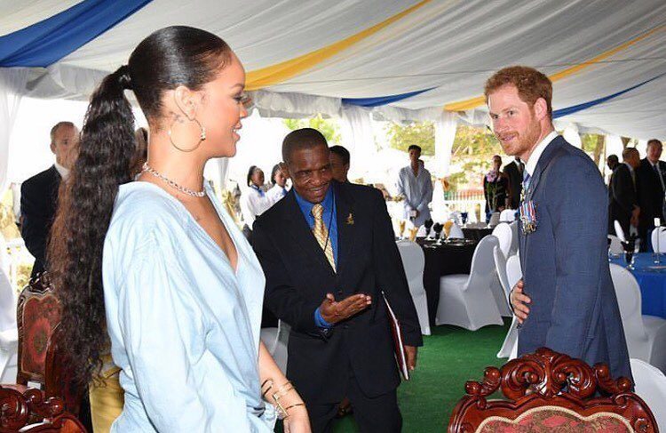 “Estou honrado por estar aqui em representação da minha avó, a rainha Isabel II, para celebrar convosco o marco histórico de 50 anos de independência desta bela nação. Sua Majestade visitou este belo país na véspera da independência, no início de 1966, desde então o povo de Barbados tem um lugar especial no seu coração”, afirmou Harry antes de posar ao lado de Rihanna e do primeiro-ministro, Freundel Stuart.