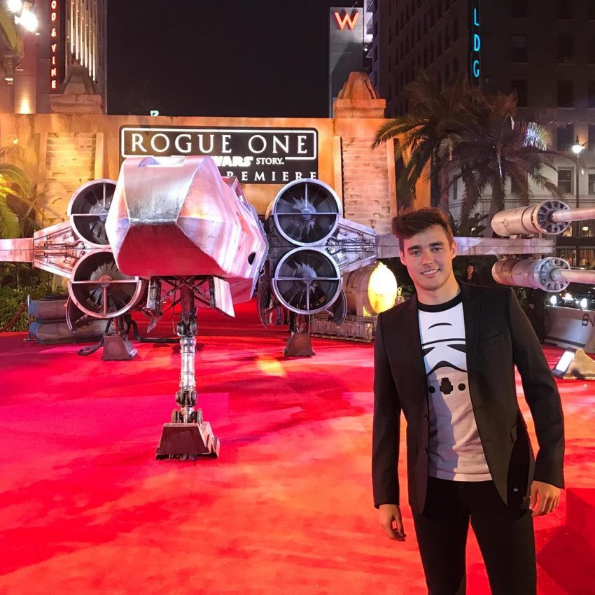 O cantor esteve com a família na estreia mundial do filme ‘Rogue One: Uma História Star Wars’, que decorreu este sábado, dia 10, em Hollywood.