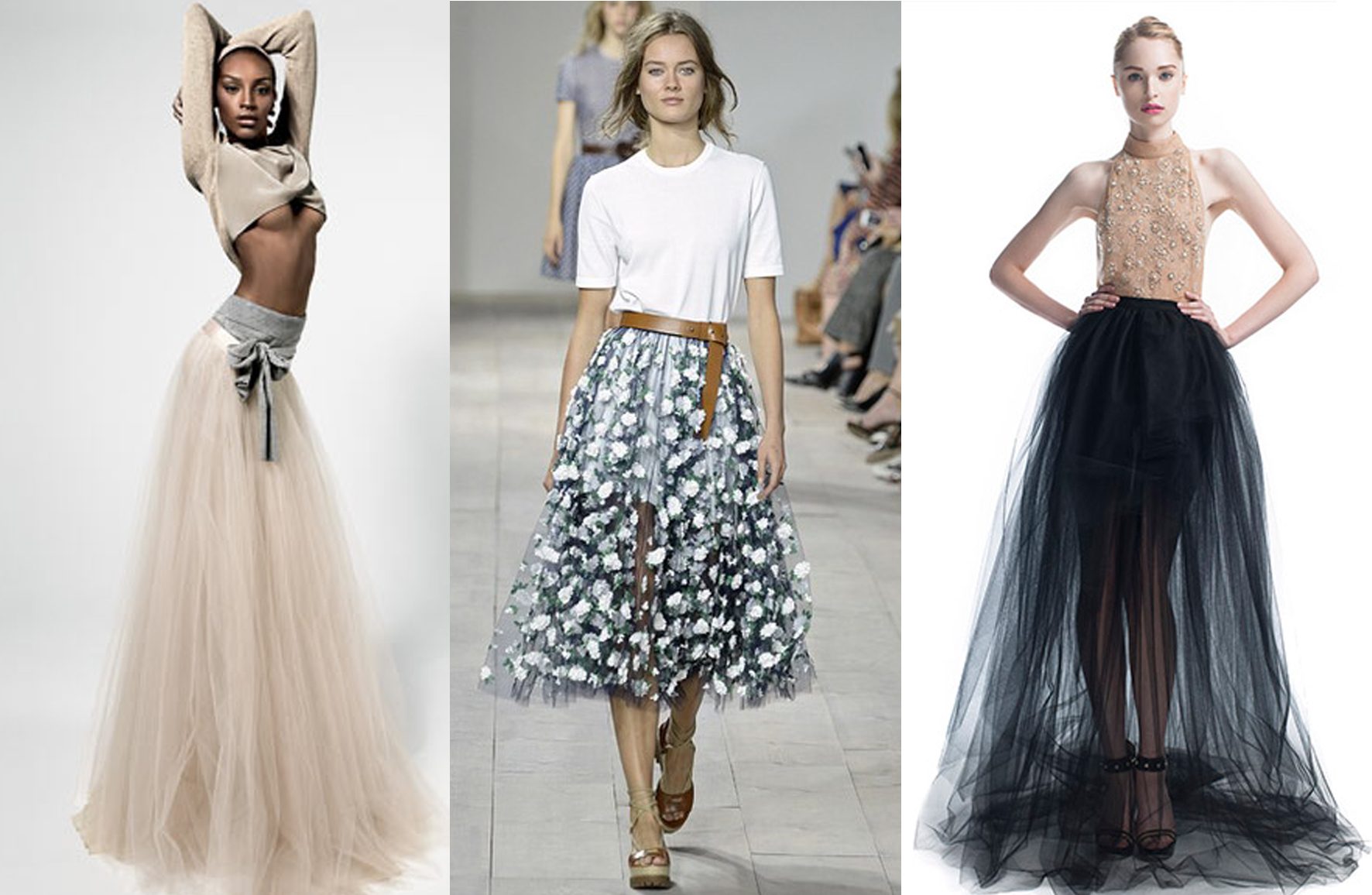 Dos vestidos de noiva, aos tutus das bailarinas, o famoso tecido regressa especialmente nas saias numa variedade de comprimentos e cores, que permitem inúmeras conjugações.