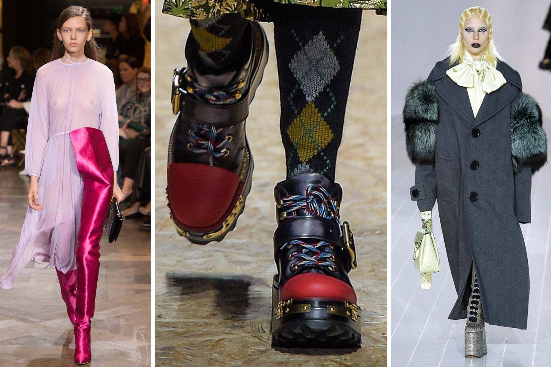 Se há alguém que consegue que um simples par de botas pareça sexy, esse alguém é Miuccia Prada. Embora à primeira vista lhe possam parecer uma imitação das famosas “botas de palhaço”, o modelo apresentado pela estilista vai muito além de qualquer lembrança. Com cores vivas e muito dourado à mistura, este modelo promete conquistar pelo seu lado confortável e casual q.b.