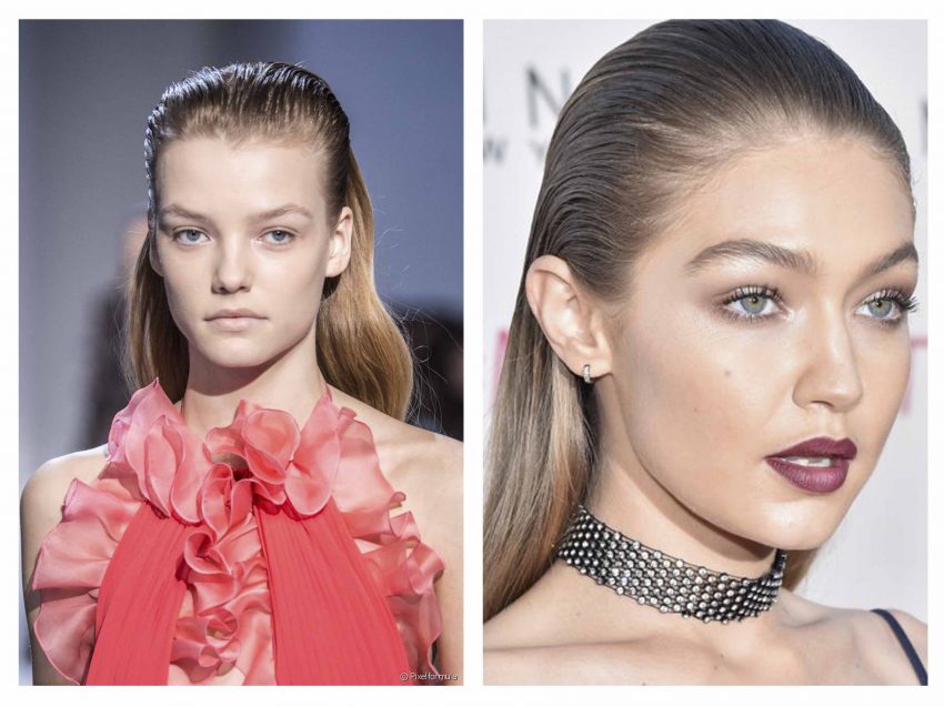 Uma das grande apostas de estilo em alguns desfile de moda internacionais foi o look efeito molhado. Se as 4 tendências precedentes são completamente fáceis de passar da passerelle para a rua, esta é ainda mais simples. Saí do banho, estiliza o cabelo penteado para trás ou para os lados, utiliza uma mousse modeladora ou um gel sem resíduos das raízes até as pontas, e tem um look digno de passadeira vermelha, semelhante ao utilizado pela família Kardashian ou pelas irmãs Hadid.