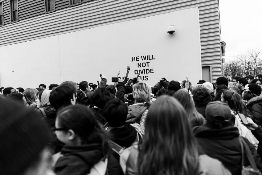 ShiaLaBeouf iniciou um protesto contra Donald Trump desde o dia da tomada de posse e que irá durar até ao último dia em que acaba o mandato, daqui a 4 anos. Será contínuo e em direto, através de live streaming no site http://www.hewillnotdivide.us/.