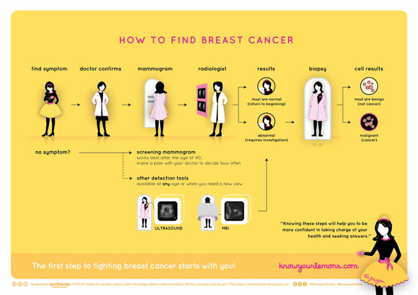 “Esta imagem de #KnowYourLemons chegou a 7,3 milhões de pessoas a partir de apenas três posts de Facebook! Obrigada Erin por espalhar a palavra! Está informada sobre o cancro da mama? Conhece os 12 sinais? Como se sente um caroço? Os passos para o descobrir? Queremos educar-vos e dar-vos a oportunidade de nos ajudar a salvar outras pessoas”, lê-se na página de Facebook de ‘Worldwide Breast Cancer’.