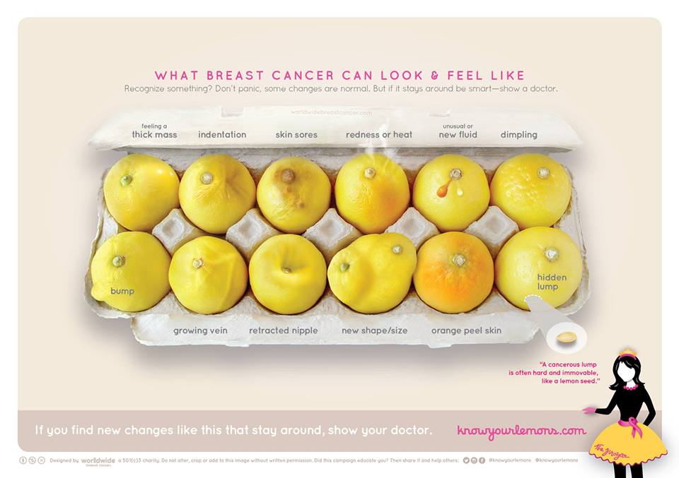 Se a vida te dá limões, faz limonada. É com base nesta premissa que nasceu uma campanha original. O objetivo é alertar as mulheres para potenciais sinais de um tumor na mama. Como? Através de limões, com diferentes formatos e deformações, colocados numa caixa de ovos.