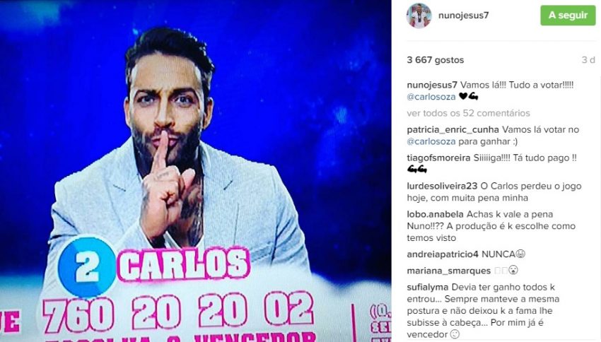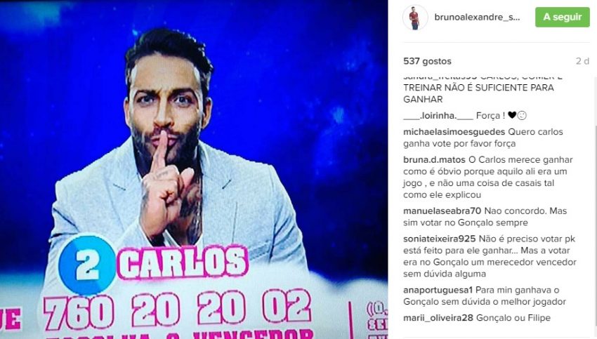 Bruno, ex-concorrente da Casa dos Segredos 6, quer ver Carlos a vencer