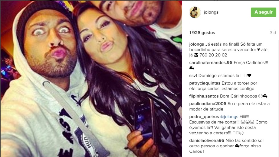 Jéssica Maria, como não podia deixar de ser, quer ver Carlos como grande vencedor