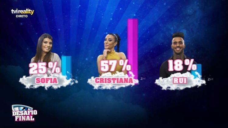 Já com Cristiana fora da Casa, Teresa Guilherme informou os restantes concorrentes que seriam eles a definir uma nova e derradeira expulsão. As nomeações foram feitas na ardósia e, numa primeira ronda, registou-se um empate entre Sofia Sousa e Rui Rodrigues. Veja quem votou em quem: