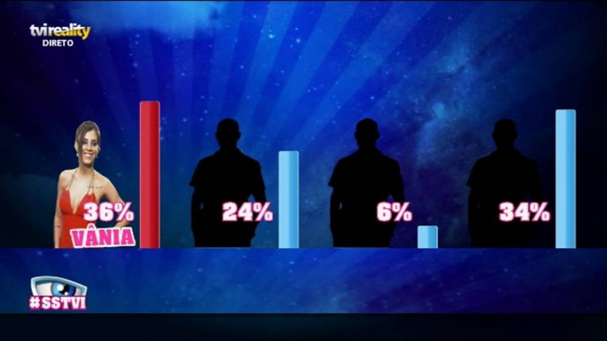 Por fim, a fechar a Gala, conheceu-se o resultado da votação que abriu logo após a saída de Vânia e na qual estavam ‘na chapa’ os outros três nomeados: Angélica, Rui e Filipe. A ex-concorrente de ‘A Quinta’ foi a mais votada e acabou por sair.