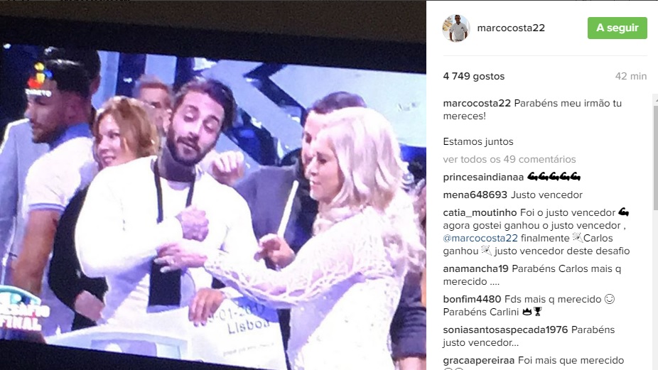 Diogo Semedo não foi o único ex-concorrente a reagir nas redes sociais à vitória de Carlos Sousa. Marco Costa da CdS 2 e Luís Nascimento da CdS 4 também o fizeram, mas sem farpas, apenas para congratular o amigo vencedor e fazer a festa com ele. O mesmo aconteceu com Diana Ferreira, ex-concorrente da CdS 4 que, neste DF 4, torcia pelos participantes que ficaram no 1º e 2º lugares.