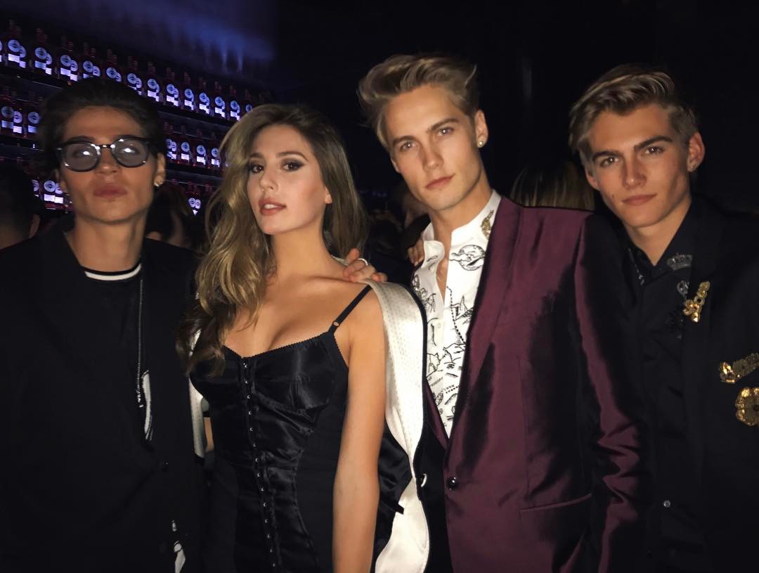 São jovens, bonitos e ricos. E familiares de caras conhecidas de Hollywood. Brandon Lee (filho de Pamela Anderson); Rafferty Law (filho de Jude Law); Presley Gerber (filho de Cindy Crawford); Sofia Richie (filha de Lionel Richie e irmã de Nicole Richie, além de amiga de Paris Hilton e ex de Justin Bieber); Sophia e Sistine Stallone (filhas de Sylvester Stallone) e Will Peltz (irmão da atriz Nicola Peltz) são alguns dos nomes que passaram pela Semana da Moda Masculina de Milão.