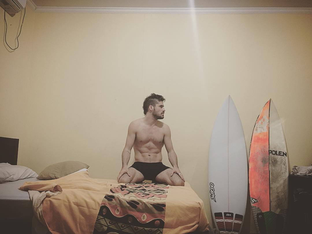 “Quase 40 horas depois, eu e elas [pranchas de surf], estamos instalados”, escreveu Pedro Sousa no Instagram, onde aparece com um penteado bem mais radical.