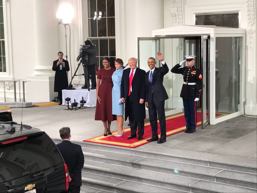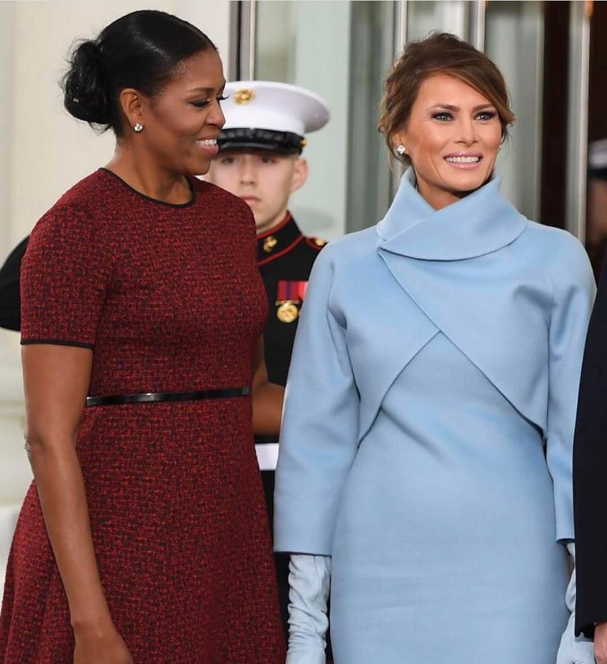 Já Michelle Obama, que tal como o marido, recebeu o novo casal presidencial à porta da Casa Branca, como manda o protocolo, escolheu um vestido mais simples. Talvez para não ofuscar a sua sucessora, já que o dia de hoje pertence aos Trump.