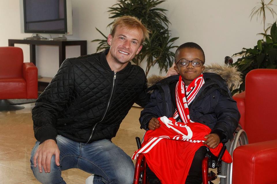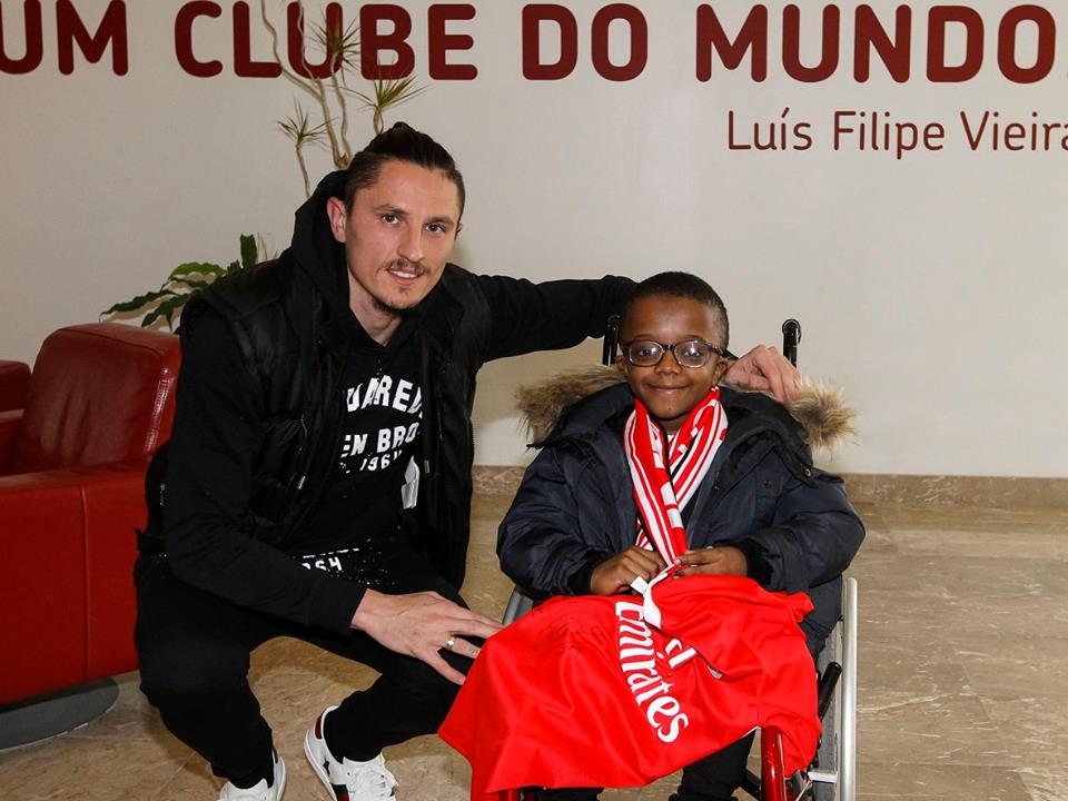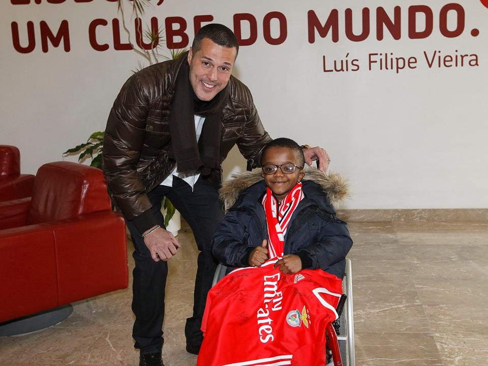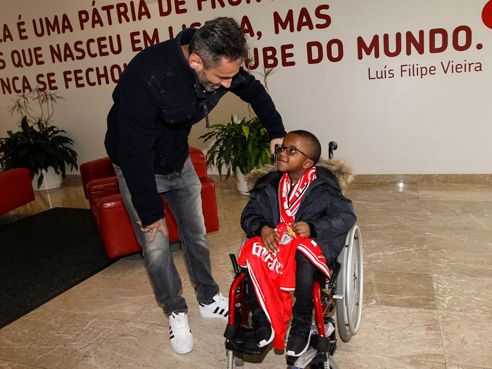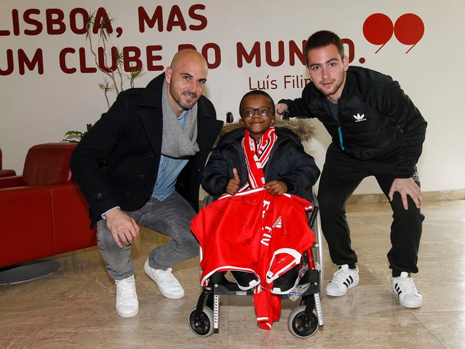 A Fundação Benfica levou Anderson e o pai à Caixa Futebol Campus (centro de estágios do Sport Lisboa e Benfica), no Seixal, esta sexta-feira, onde teve a oportunidade de estar com cada um dos jogadores e com o treinador.