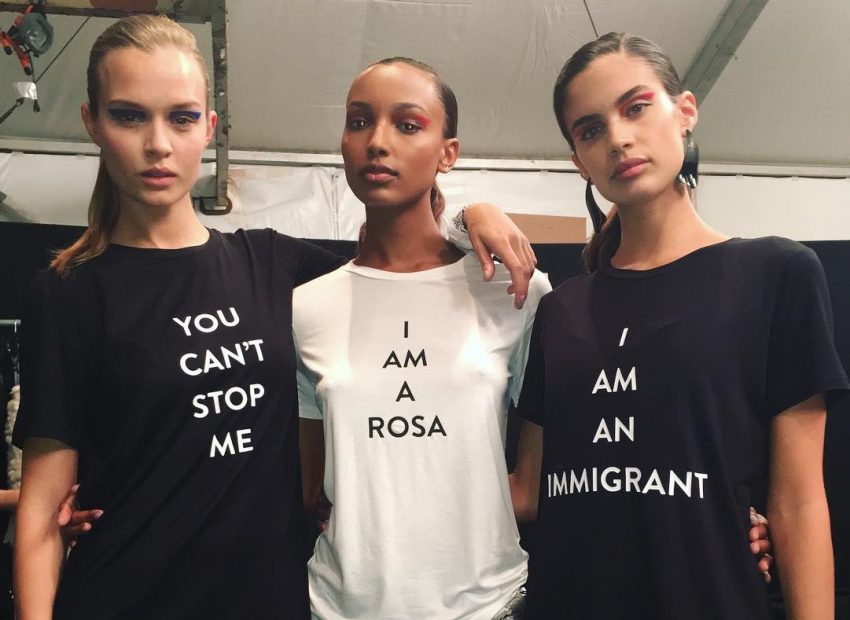 Na Semana da Moda de Nova Iorque, que terminou há dias, a Prabal Gurung apresentou um conjunto de t-shirts com dizeres como “Eu sou imigrante”, entre outros, dedicadas às mulheres que nos inspiram.
