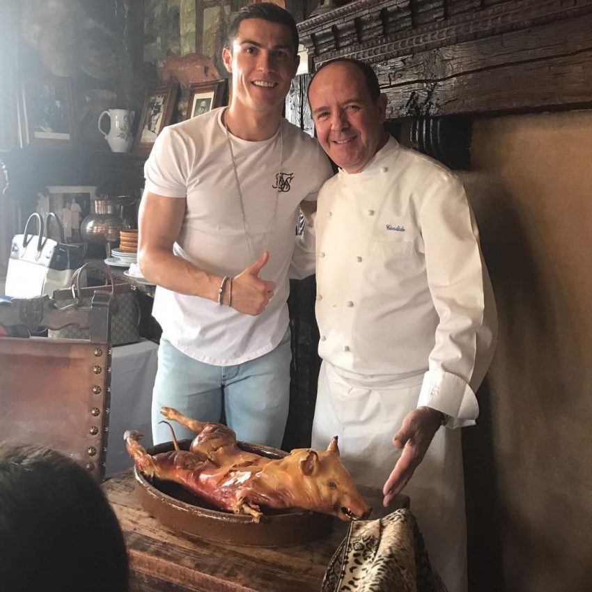 “O leitão estava fantástico. Estava tudo top. E as vistas também são lindas. Muito obrigado por tudo, senhor Cândido (n.d.r.: dono do restaurante). CR7”.