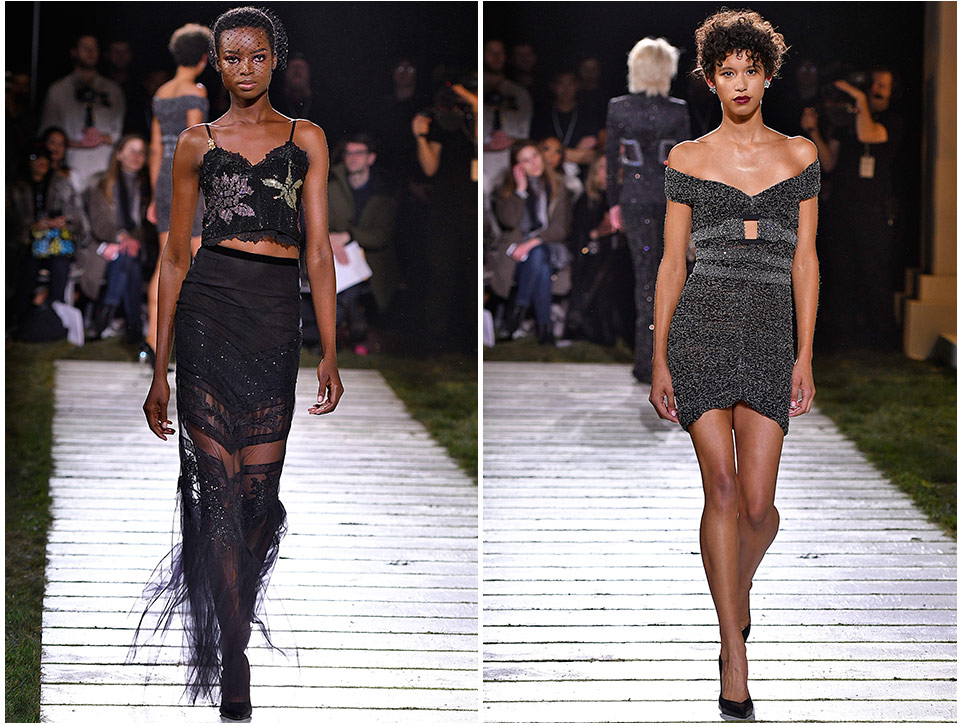 A veterana Naomi Campbell, de 46 anos, abriu o desfile ostentando um slip dress de seda com um robe com detalhes metálicos. Por sua vez, Kendall Jenner fechou o evento com um sensual vestido nude coberto de pérolas e cristais.