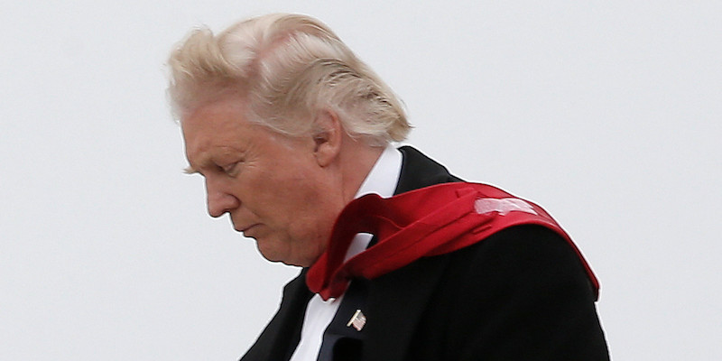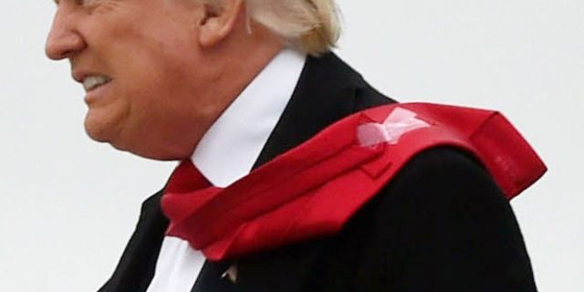 O que é? Donald Trump fixa a parte de trás da gravata com fita adesiva. Realmente é uma forma de manter o adereço impecável, sem mexer, mas a questão podia ser resolvida de outra forma: usar uma gravata com o comprimento certo ou apertando-a como deve ser.