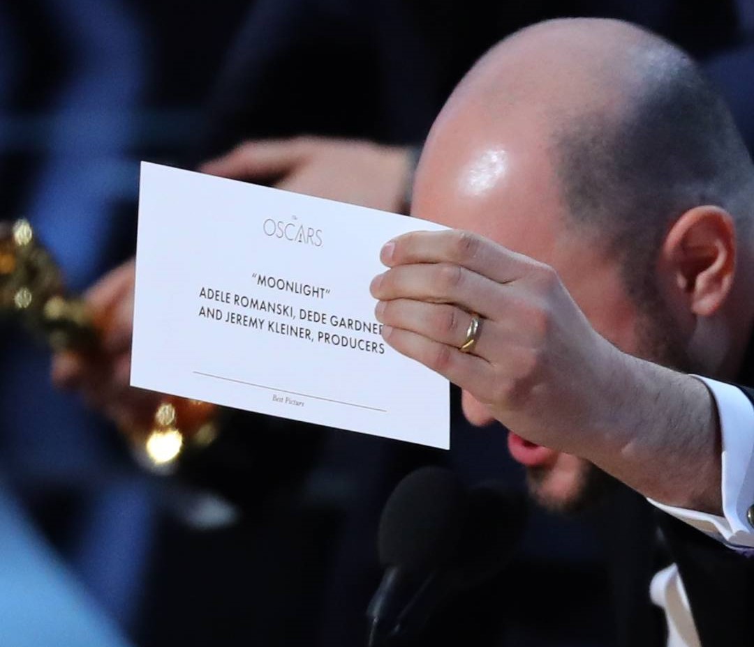 A ‘culpa’ foi da troca de envelopes, que trazia o nome de Emma Stone em ‘La La Land’ – que ganhou na categoria de Melhor Atriz Principal – em vez de ‘Moonlight’, a película vencedora.