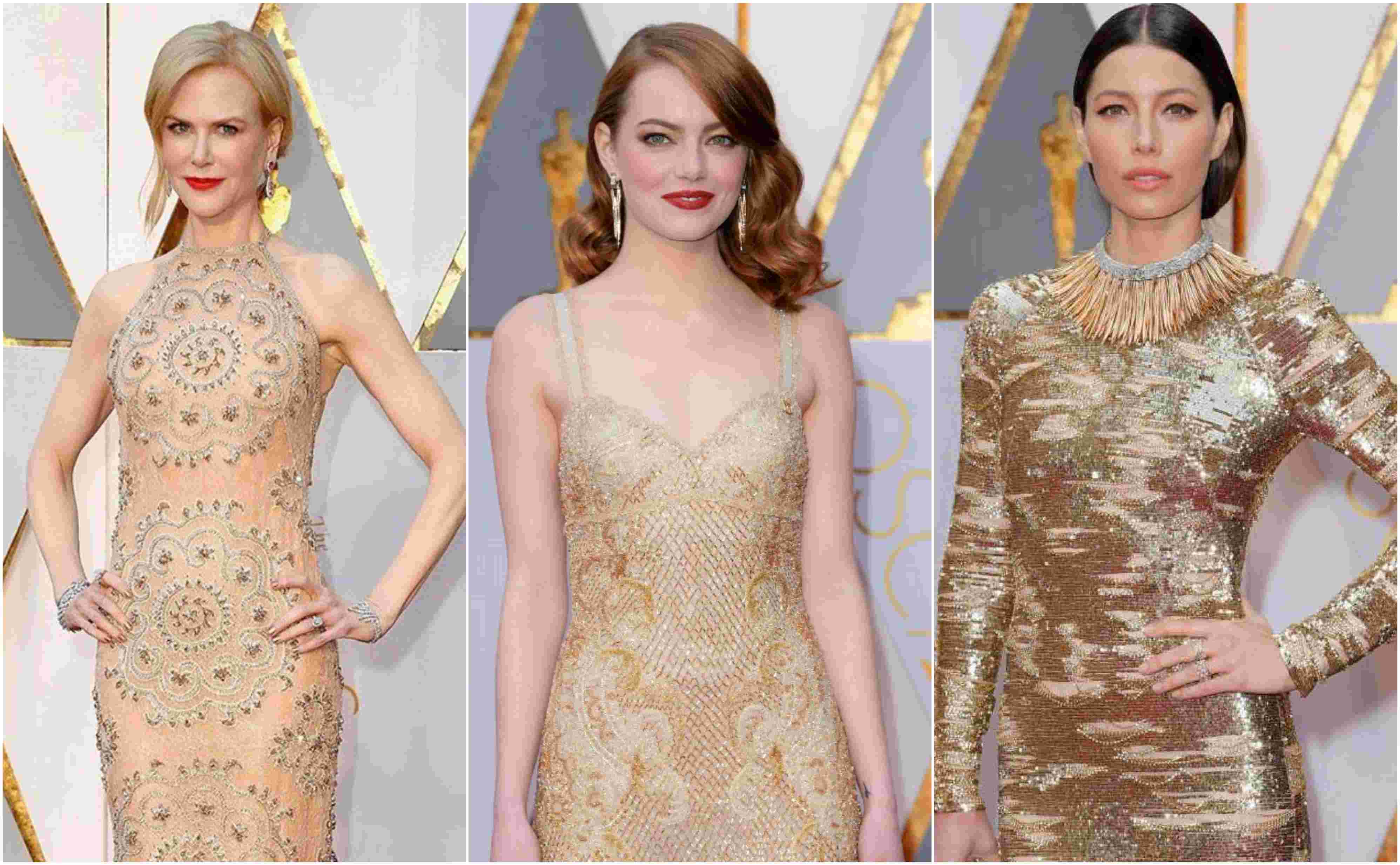 Emma Stone, Nicole Kidman e Jessica Biel, só para nomear algumas, escolheram o dourado para pisar a red carpet. E até resultou bem para a primeira, já que foi assim que subiu ao palco receber o Óscar de Melhor Atriz Principal, ficando assim a combinar com o galardão.