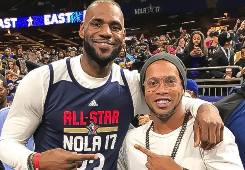 Basicamente está perto de estrelas do basquetebol como LeBron James, Stephen Curry, James Harden, Anthony Davis e Marc Gasol. Ronaldinho Gaúcho até assistiu ao treino, antes do jogo em si, este domingo.