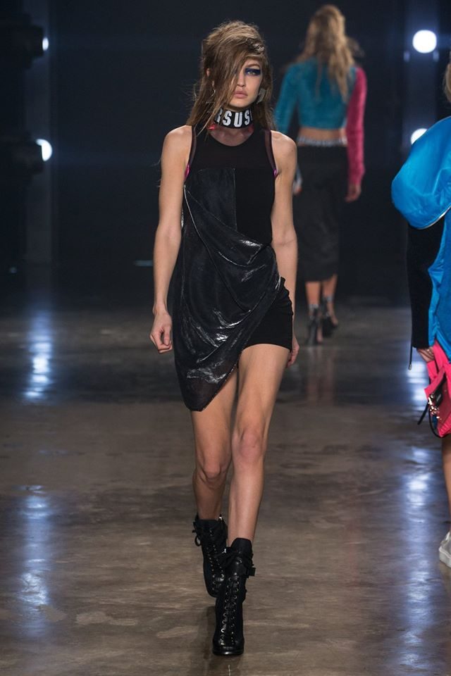 Donatella Versace escolheu as manas Hadid para começar e acabar o desfile. Gigi deu o mote e Bella terminou em beleza.