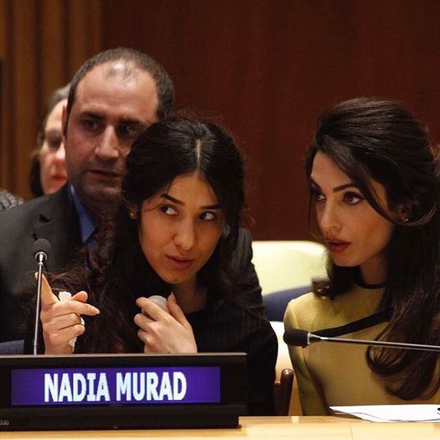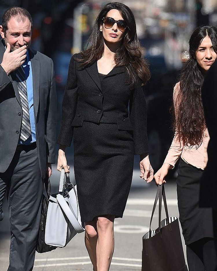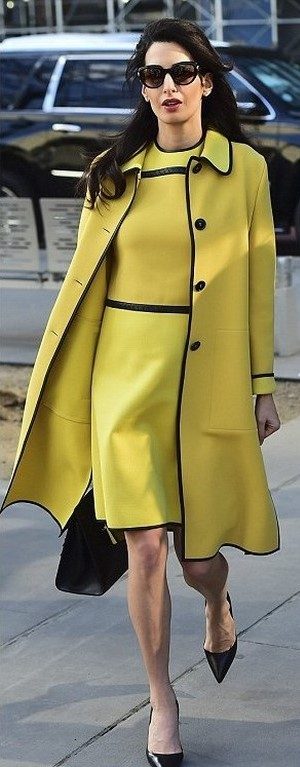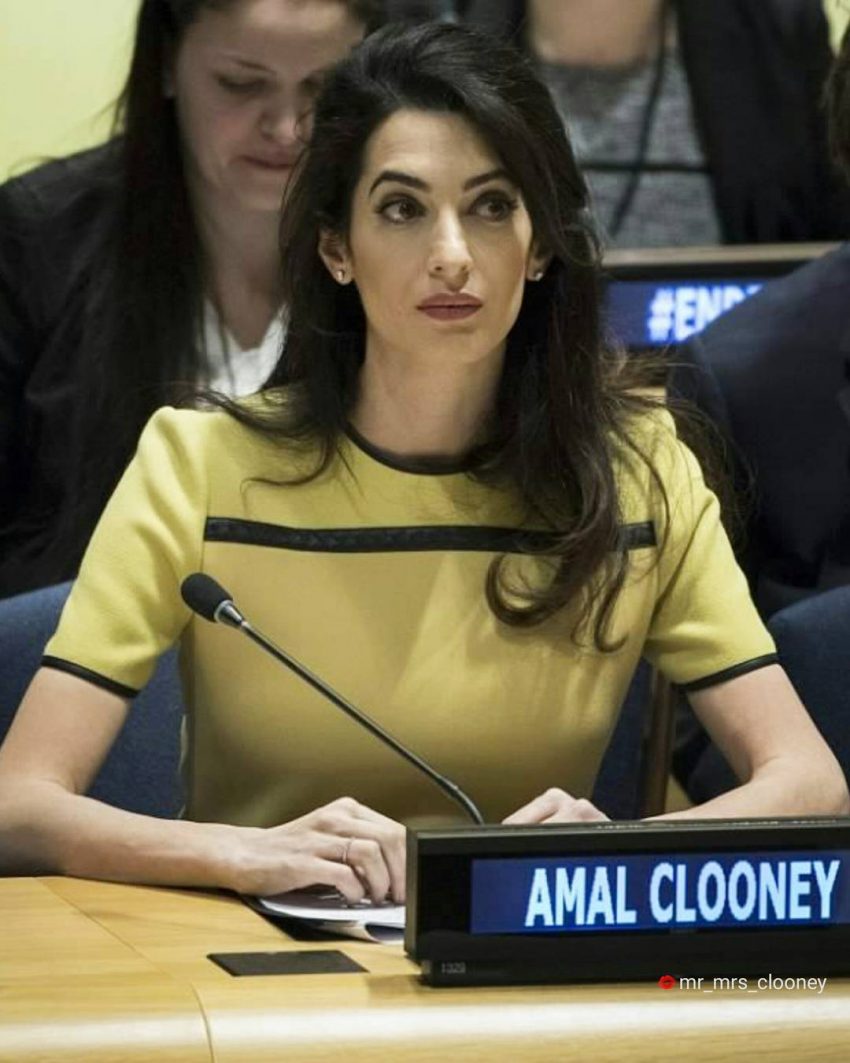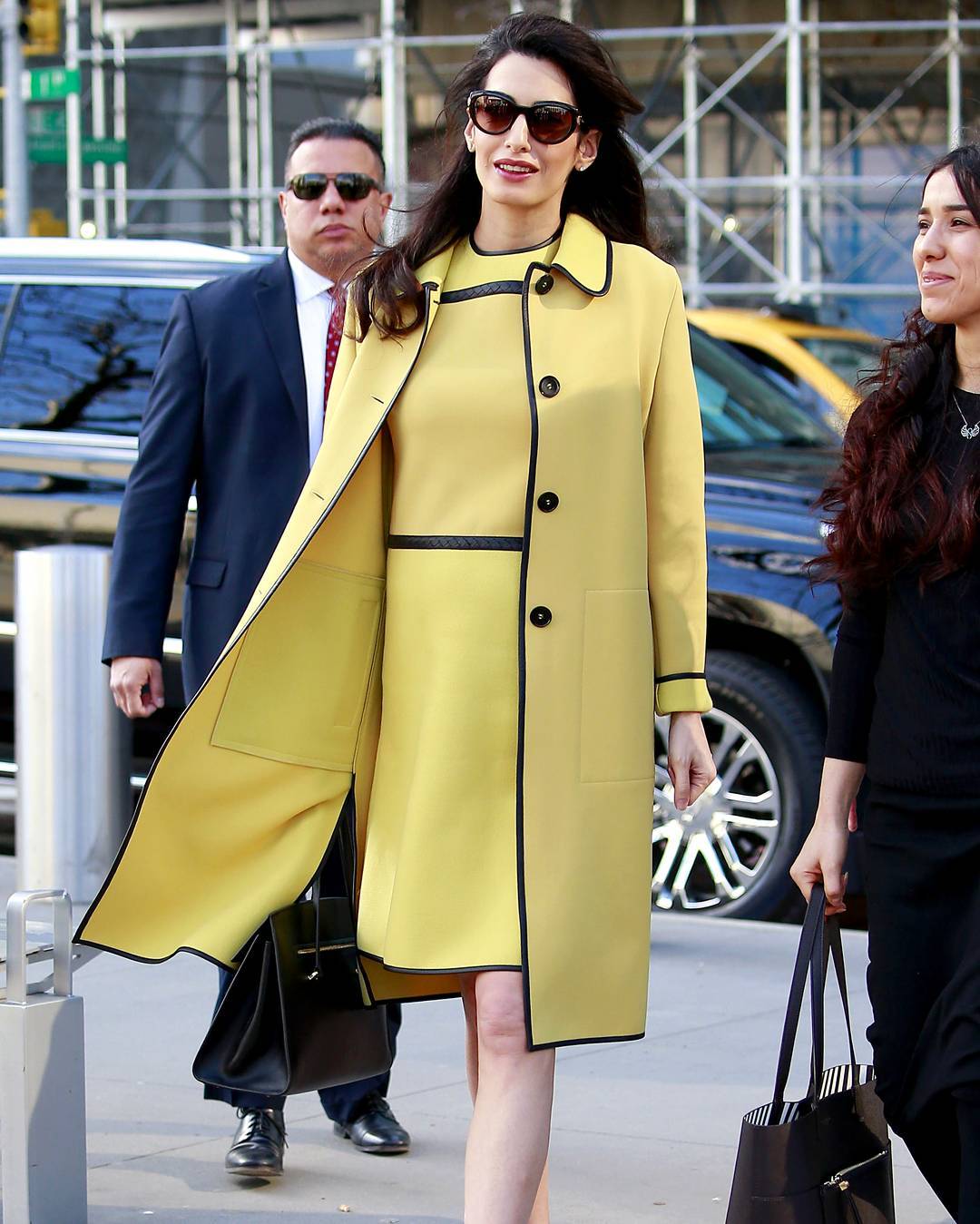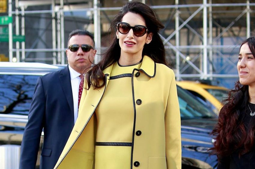 A mulher de George Clooney está a defender Nadia Murad, uma sobrevivente da comunidade iraquiana Yezidi, atacada pelo auto-proclamado Estado Islâmico, e numa das últimas audiências optou por um vestido amarelo, estilo anos 60 que disfarça bem o seu estado de graça.