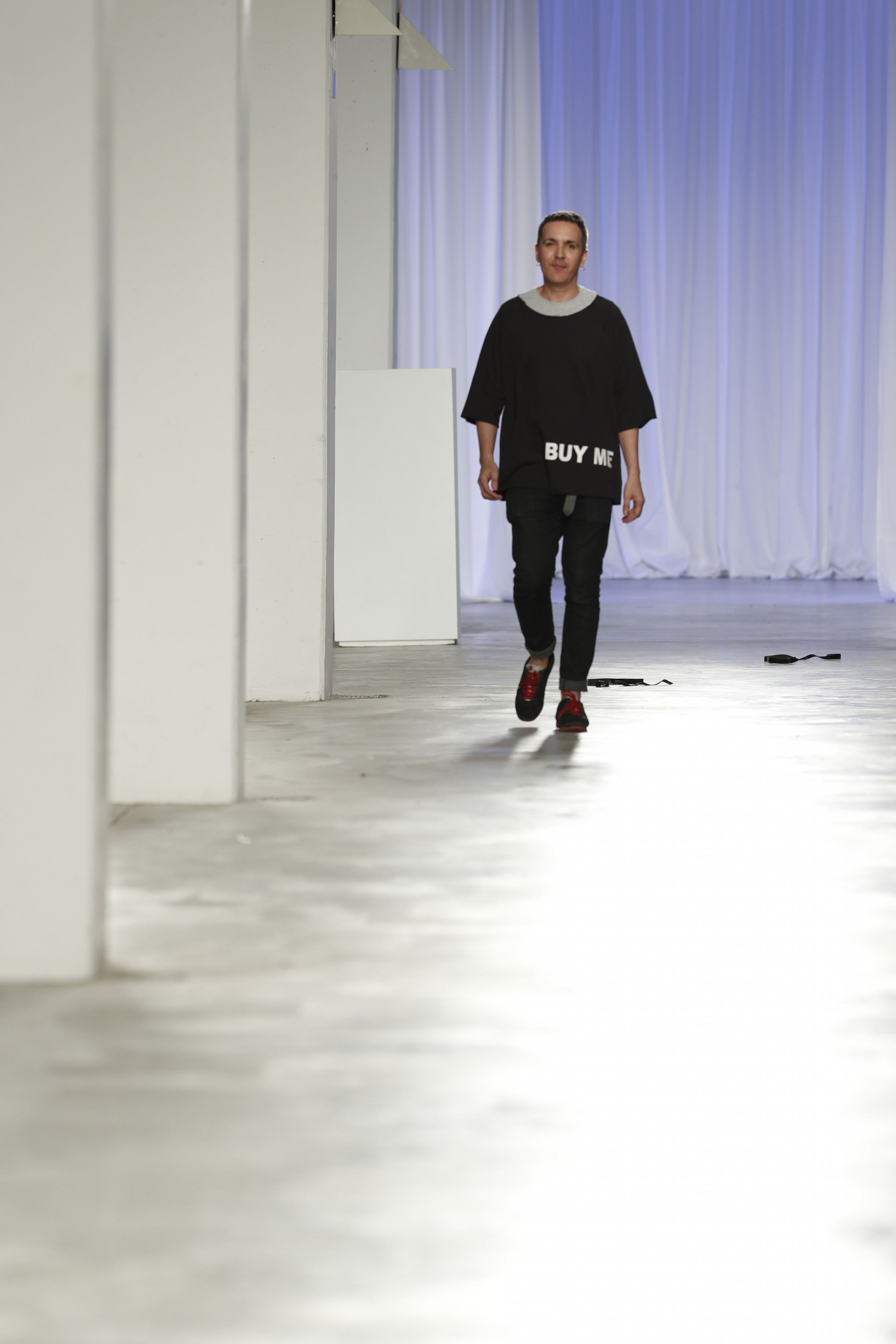 O estilista já tinha avisado. “Mais do que a apresentação da coleção, este desfile pretende ser uma espécie de panfleto “revolucionário”, um manifesto sobre o funcionamento da indústria de moda em Portugal, uma tomada de posição em relação ao panorama geral, de uma forma clara, transparente, direta, honesta e verdadeira”, lê-se na descrição da coleção.