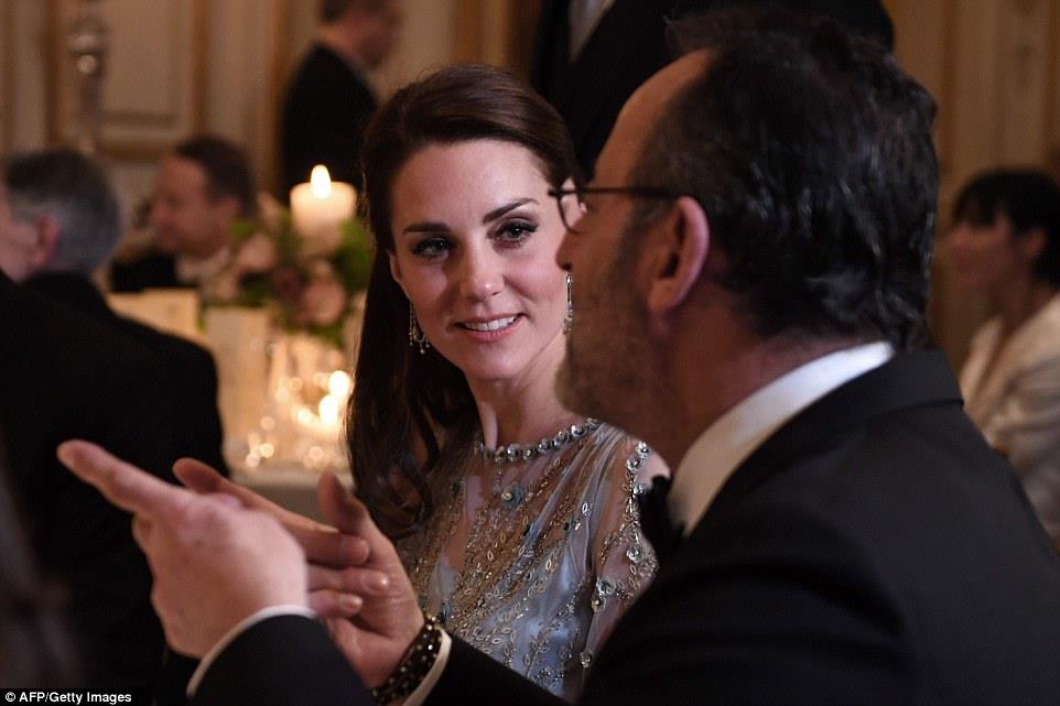 Kate Middleton e o Príncipe William foram os convidados de honra de um Jantar de Gala oferecido pelo Embaixador de Sua Majestade na França, Edward Llewellyn, na Embaixada Britânica em Paris, como parte da visita oficial dos Duques de Cambridge à capital francesa a 17 de março de 2017.