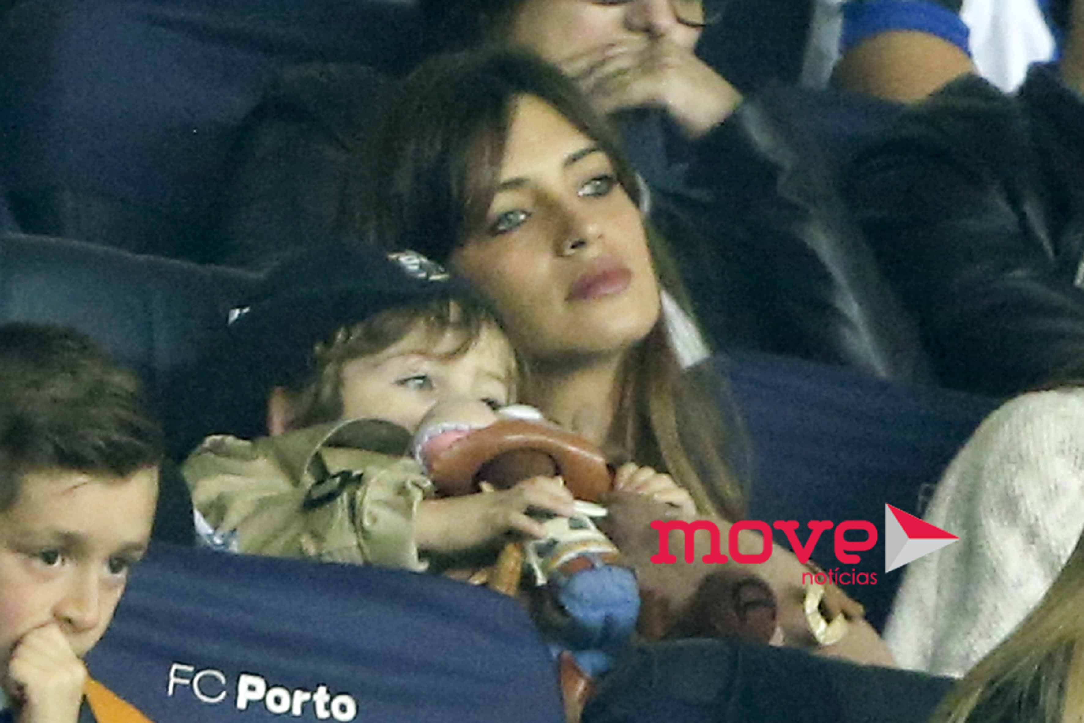 Num jogo em que só a vitória interessava aos adeptos portistas, na bancada, Sara Carbonero teve a difícil tarefa de domar a rebeldia do filho mais velho, Martín, de 3 anos, que estava num dia especialmente rabugento.