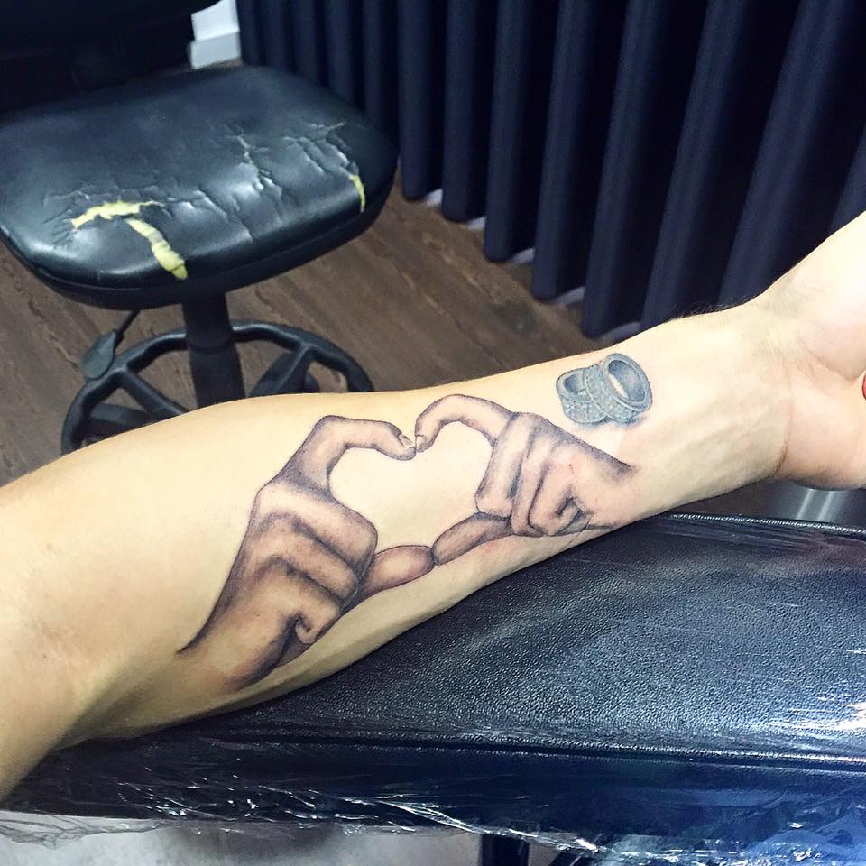 Em novembro de 2015, tinha feito uma tatuagem no braço, com as duas mãos do antigo casal.
