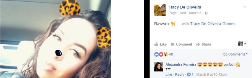 Ora, essa publicação mereceu várias reações, entre elas um ‘coração’ de Tracy de Oliveira, prima de Cristiano Ronaldo que viveu com Alexandra a experiência de morar naquela que foi a casa mais vigiada do país entre 16 de setembro de 2012 e 1 de janeiro de 2013.