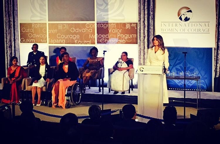 Quarta-feira, a mulher de Donald Trump esteve em Washington na cerimónia de entrega dos prémios “Mulheres Valentes”, do Departamento de Estado americano, uma iniciativa promovida para reconhecer o trabalho de 13 mulheres de diferentes países.