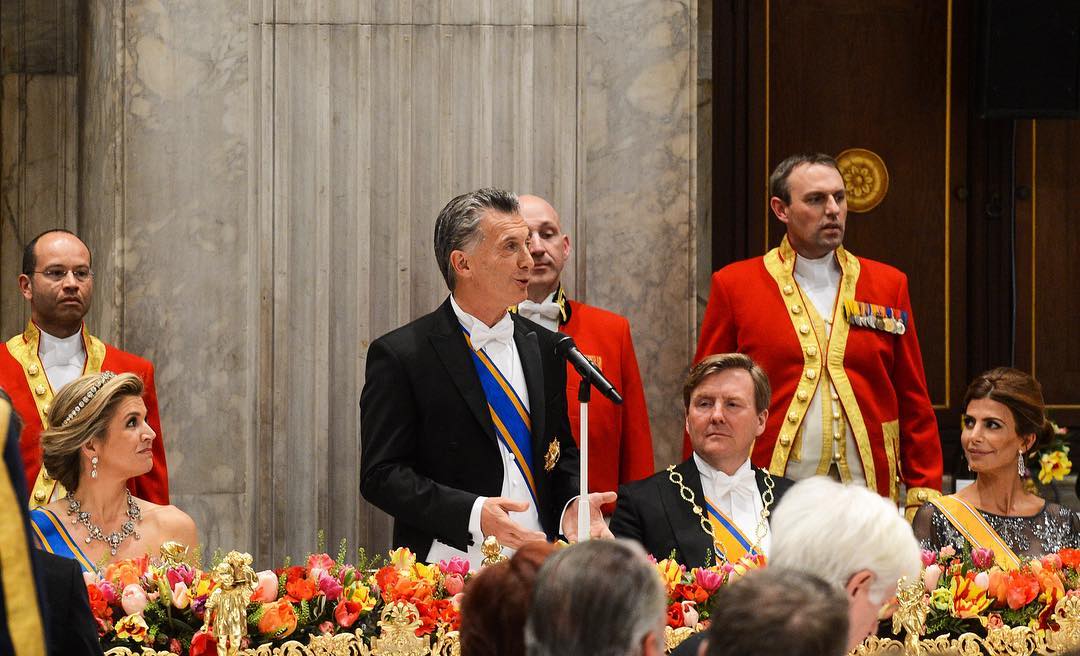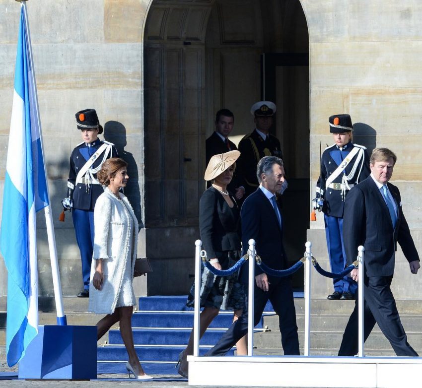No jantar de Estado, oferecido pelo rei Guilherme e a mulher no Palácio Real de Amesterdão, o casal convidado esteve muito elegante. Mauricio Macri foi condecorado com a Grã-Cruz da Ordem do Leão Holandês, tendo a primeira-dama usado um vestido preto com brilhantes bordados, da firma argentina Ménage à Trois, que foi criado especialmente para a ocasião e que foi encomendado em janeiro, segundo referiu a dona da marca ao jornal ‘La Nación’.