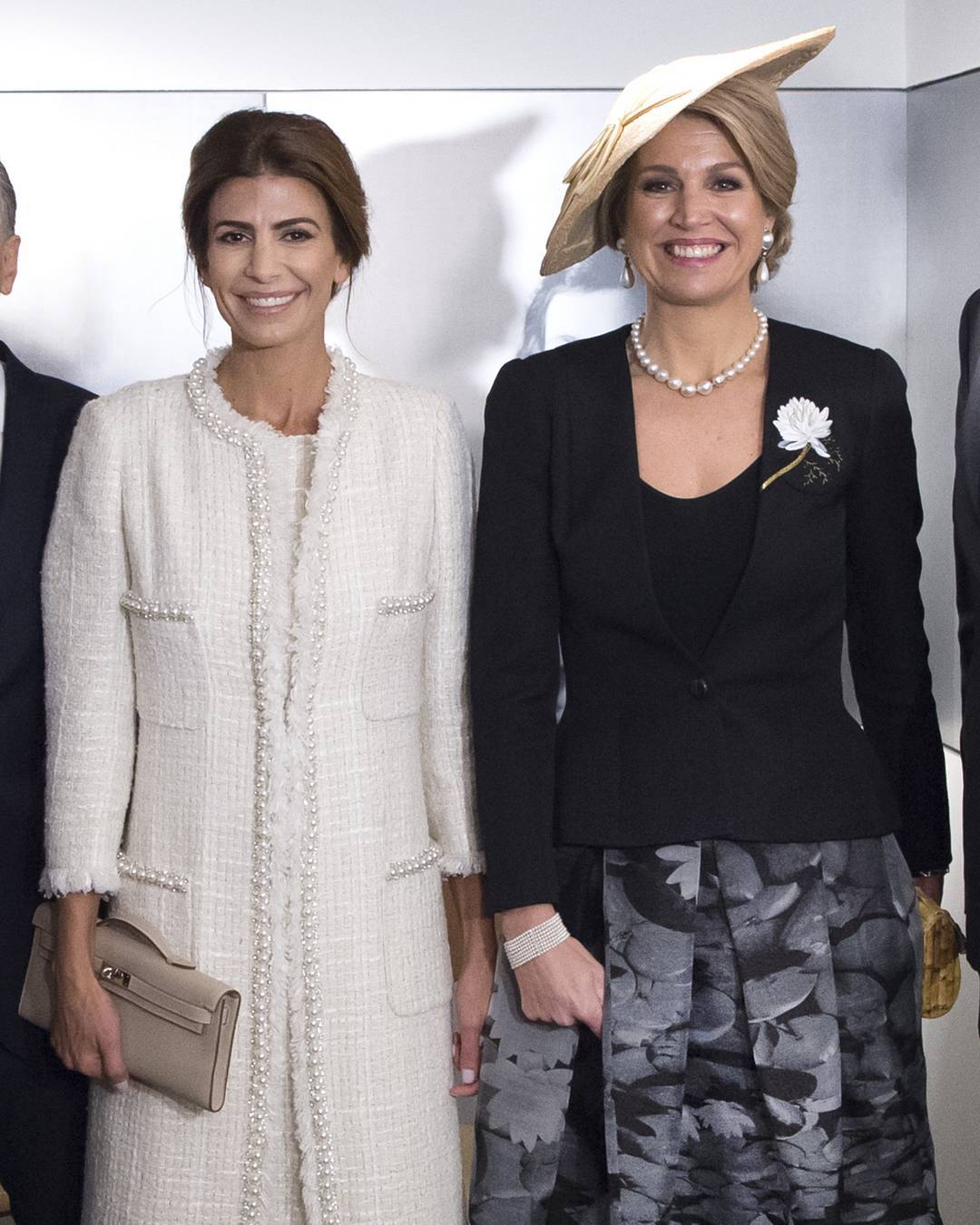 Já a monarca usou um colar, chamado de “Colar da Casa Diamante”, que pertence à família real e que não era visto há 45 anos. Quanto ao vestido, repetiu um rosa claro, com decote em coração, do designer holandês Jan Taminiau que já tinha levado ao casamento do seu irmão, Juan Zorreguieta, com Andrea Wolf em Viena, no verão de 2014.